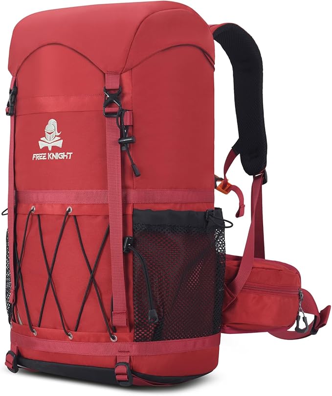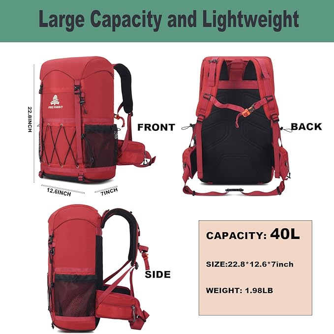 Bseash 40L Waterproof Hiking Backpack with Rain Cover, Outdoor Sport Travel Bag Daypack for Camping Climbing Skiing Cycling (Red)