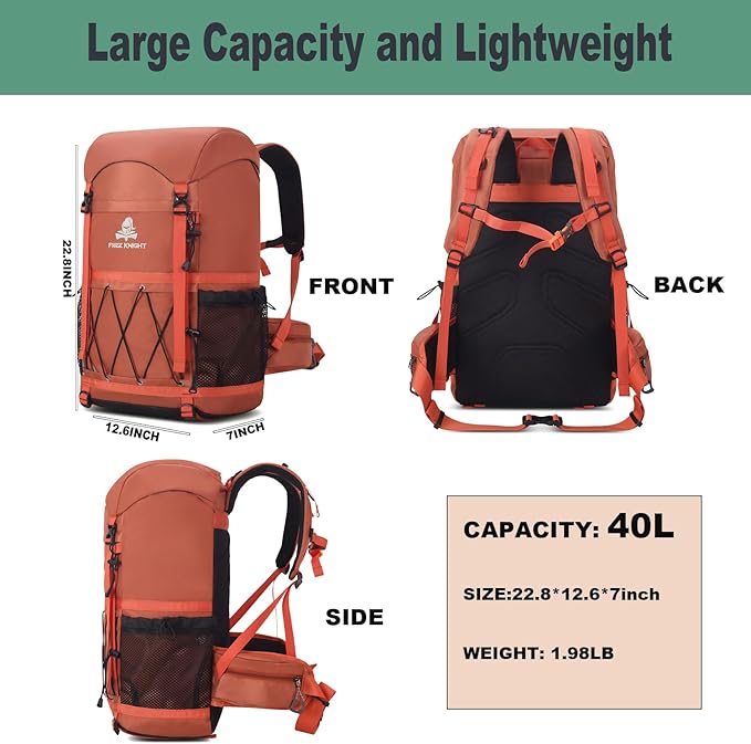 Bseash 40L Waterproof Hiking Backpack with Rain Cover, Outdoor Sport Travel Bag Daypack for Camping Climbing Skiing Cycling (Orange)