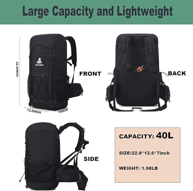 • Capacity: 40L, Size: 58 x 32 x 18 cm (22.8 x 12.6 x 7 inches), Weight: 1.98lb