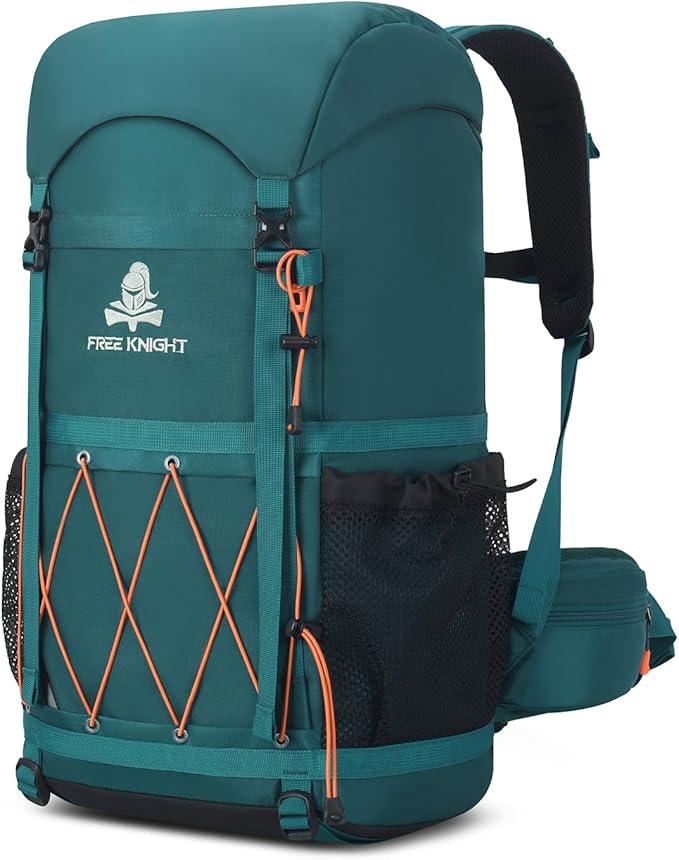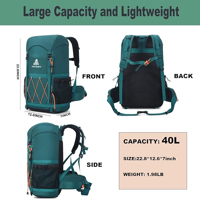 Bseash 40L Waterproof Hiking Backpack with Rain Cover, Outdoor Sport Travel Bag Daypack for Camping Climbing Skiing Cycling (Blue Green)