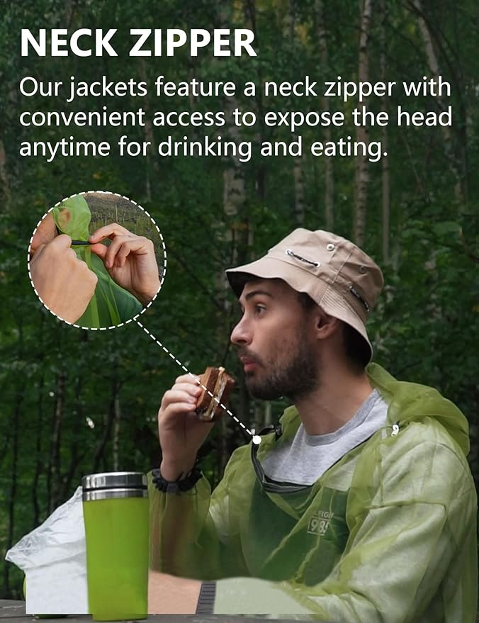 • USER FRIENDLY - Protect yourself and your family from insects with this natural and effective mosquito jacket. The fully-zippered head cover provides easy access to your face, and adjustable drawcords ensure all-day protection from wrist to ankle.