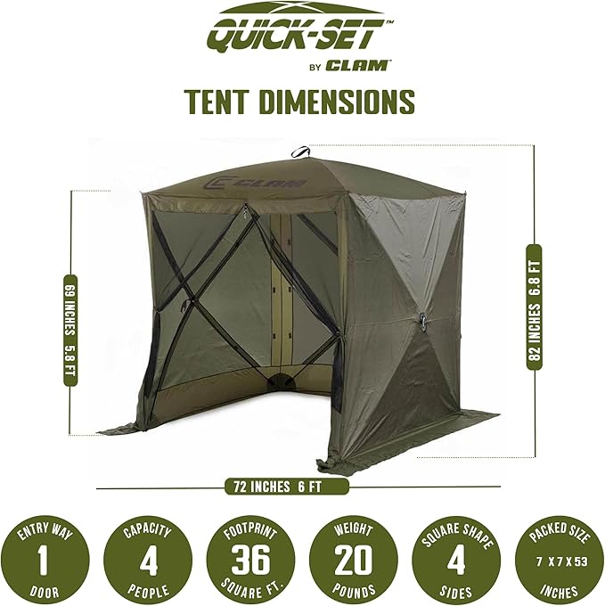CLAM Quick Set Traveler 6x6Ft Portable Outdoor 4 Sided Canopy Shelter, Green/Tan + Clam Quick Set Screen Hub Tent, Accessory Only, Green (3 Pack)