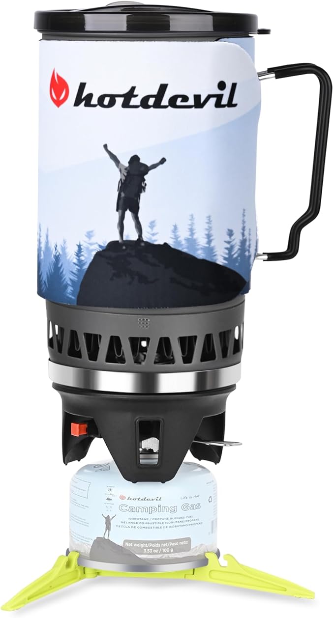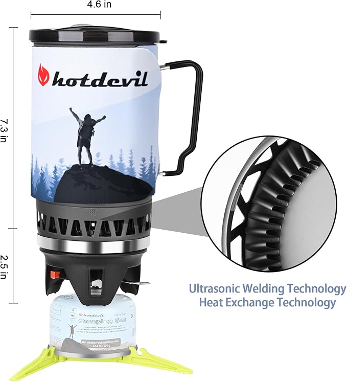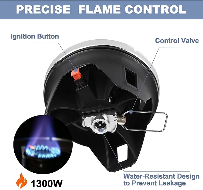 • High Efficiency: Boil 1L litre water in a lightning few minutes with half the fuel consumption of traditional systems. Output power: 1.3KW. Advanced windproof technology and heat exchange technology, not only the impact of wind, but also the efficiency. Even at extreme altitudes or cold areas, consistent performance can also be guaranteed.