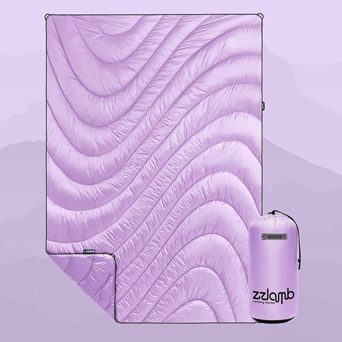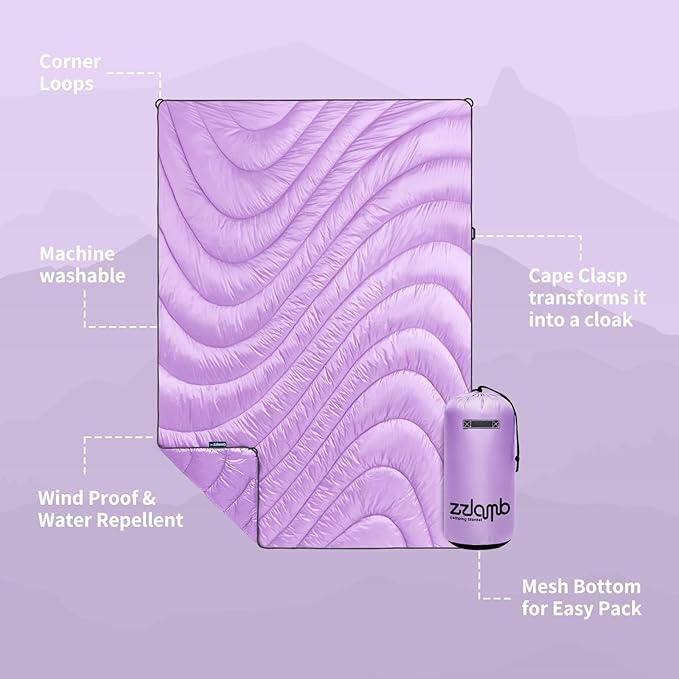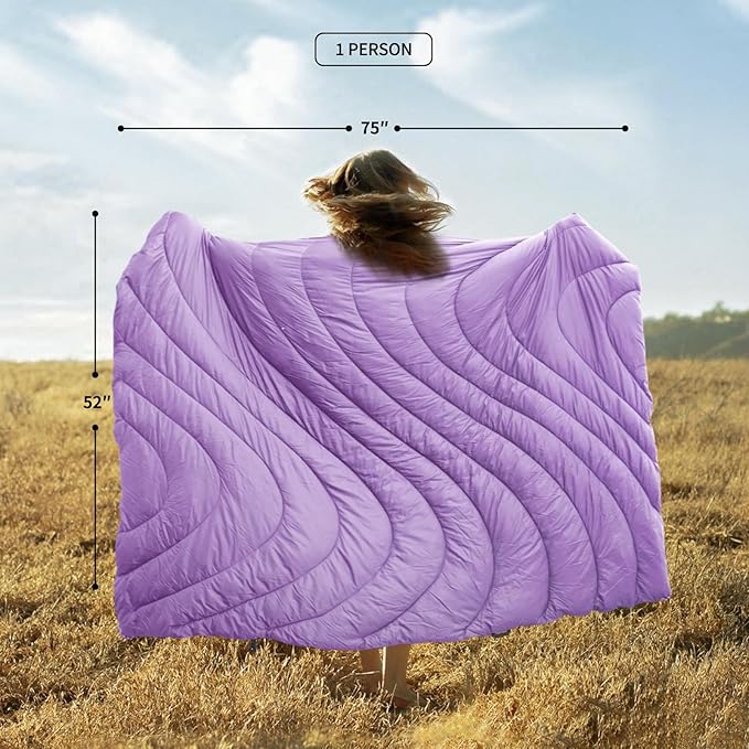 zzlamb Camping Blanket, Lightweight Cloak Puffy Down Alternative Travel Blanket, Portable & Windproof Warm Outdoor Blanket, Cozy Quilt Plane Car Picnic Hammock Beach Backpacking, 52x75in