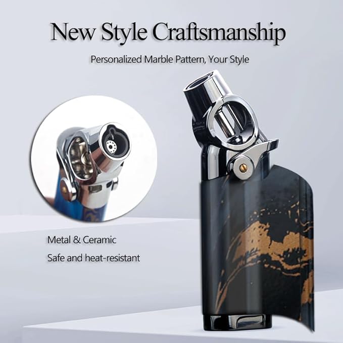 • SAFE & SIMPLE IGNITION BUTTON】Smooth single action on ignition trigger:you only need to press it to get the flame and release it to turn it off. The advantage is that one hand can fully control this torch lighter.