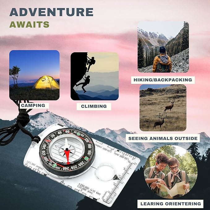 • HIGH QUALITY: This is a high quality product that it is a waterproof compass made with acrylic materials to prevent interference with the magnetic needle and ensure accurate readings. It is durable, compact, and portable, that makes it perfect for every outdoor activity