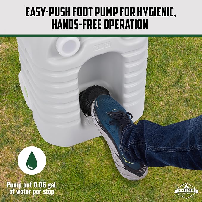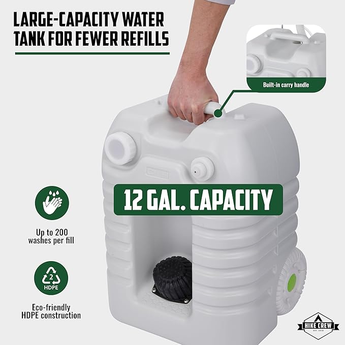 Hike Crew Portable Camping Sink & Water Reserve | Outdoor Travel Hand Wash Station with Large 12 Gallon Capacity Water Tank, Hands-Free Foot Pump, Faucet, Soap Dispenser, Rolling Wheels & Carry Handle