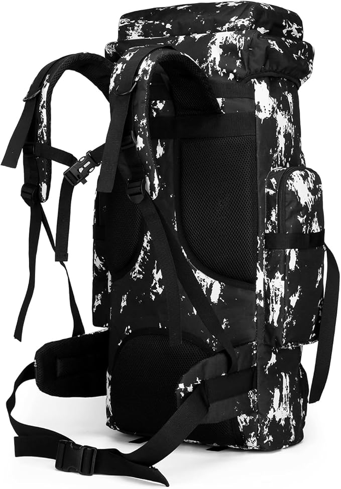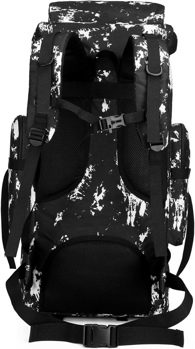 • 【Hiking Backpack Structure】: The 70L camping backpack main compartment is drawstring closed, hiking backpack roomy enough for you storage hiking gear, shoes and luggage, 1 laptop compartment, 1 front zipper pocket and 2 side pocket for separate and orderly storage.