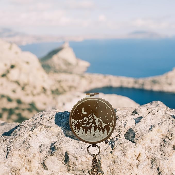 • 【Travel with Confidence】Engraved with nature-inspired moon, mountains and stars design on its lid, our vintage compass is fully functional and offers accurate navigation by pointing to magnetic North, ensuring you never lose your way
