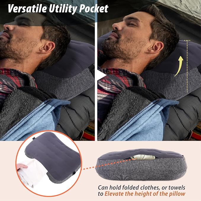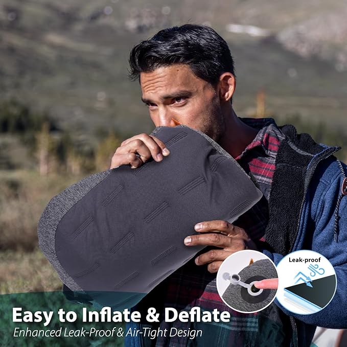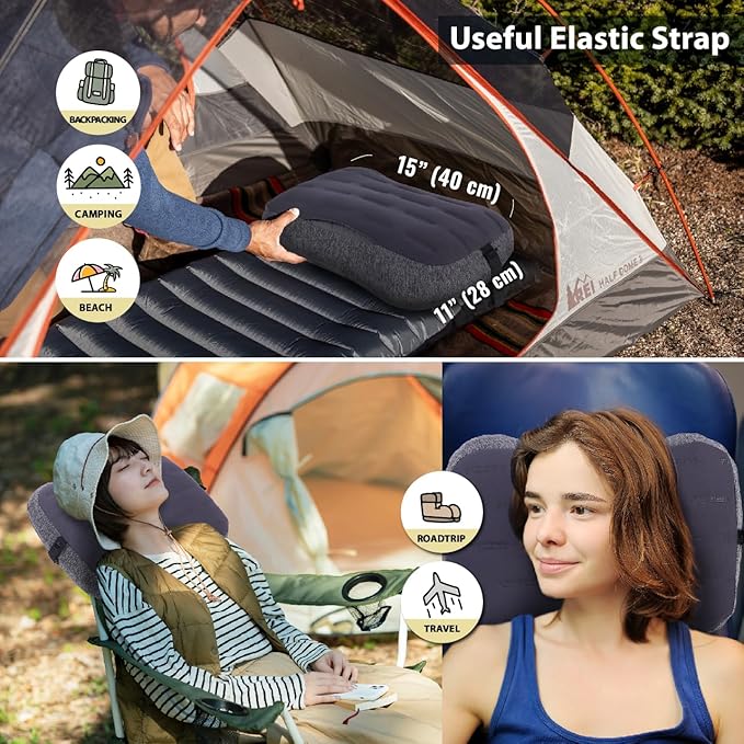 • Durable Material & Construction: Rest easy with the extra secure valve and thickened TPU bladder, preventing air leaks and ensuring the travel pillow's longevity. Quality and durability seamlessly intertwine for a dependable camping experience.