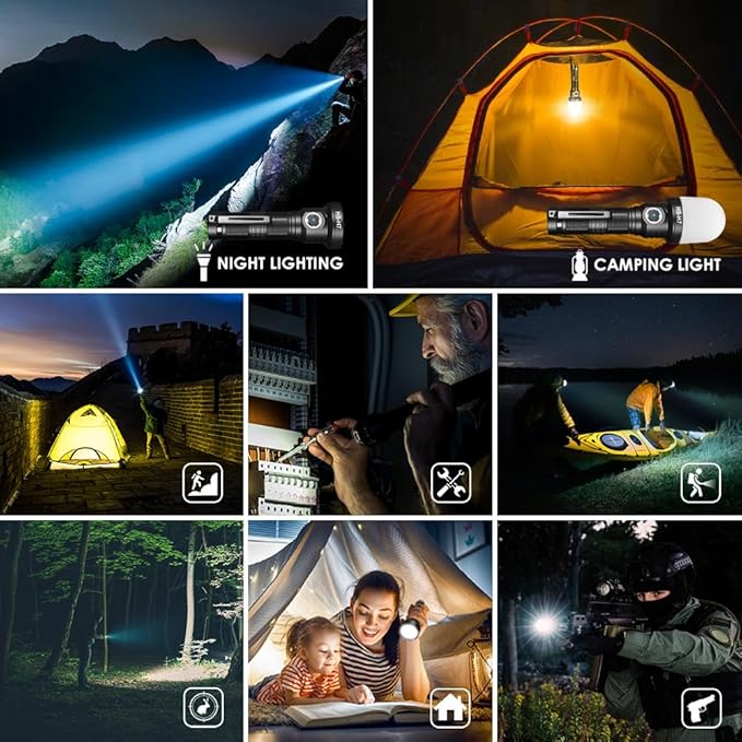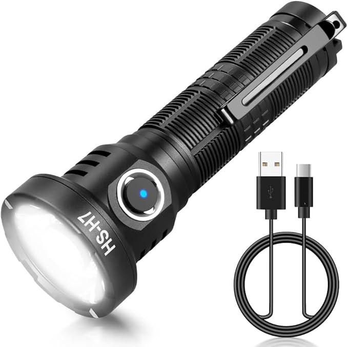 • 【USB-C Rechargeable Flashlight】The rechargeable flashlight has a built-in rechargeable battery, no need to replace the battery frequently, and the USB-C interface is convenient for charging.it can work for up to 7 hours. Advanced Temperature Regulation Technology (ATR) when the temperature exceeds 45 degrees the brightness automatically drops to medium light.