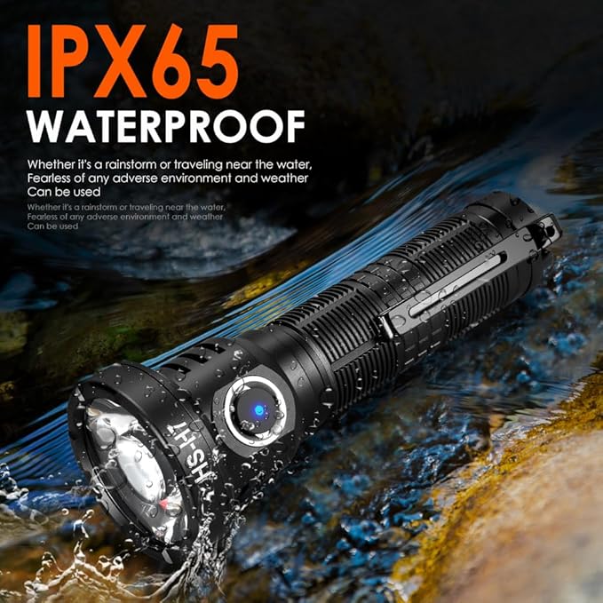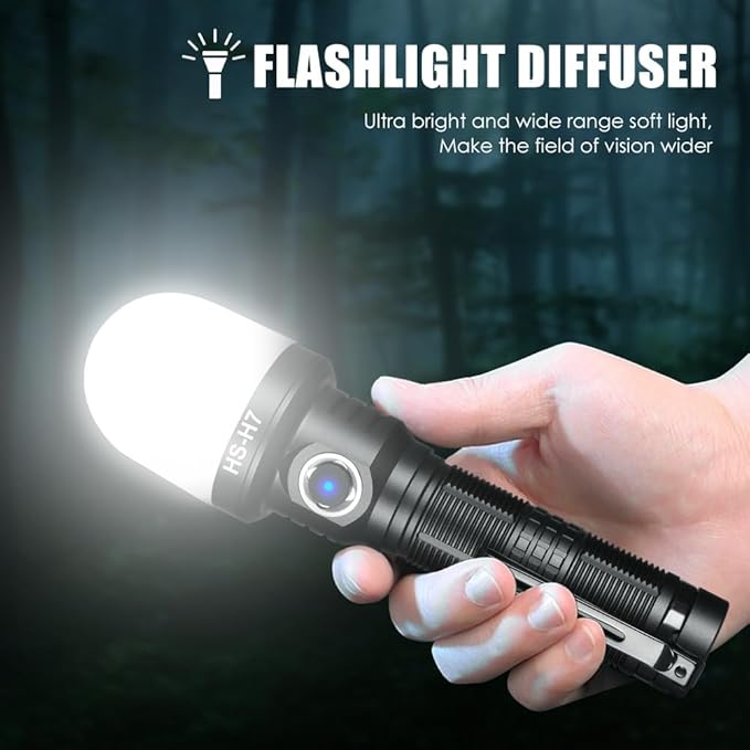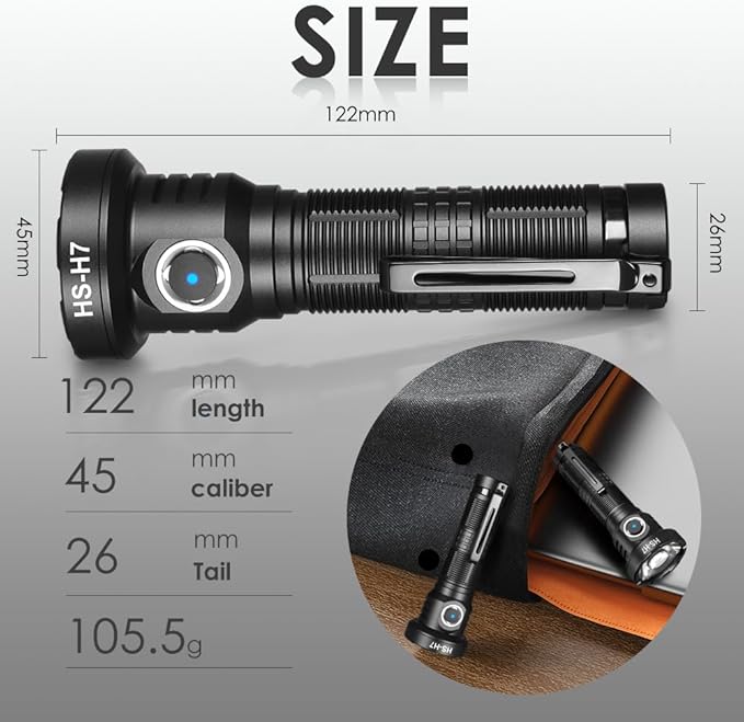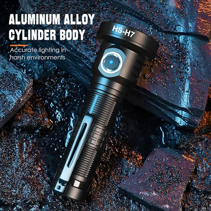 • 【High Powered Small Flashlight】Home Safety H7 LED Tactical Flashlight is equipped with an upgraded high-quality powerful SFT40 LED chip & TIR lens, and the light source is more stable,light penetration is stronger. It can provide a maximum output of up to 2500 lumens and a maximum range of 830 Yards/759m.