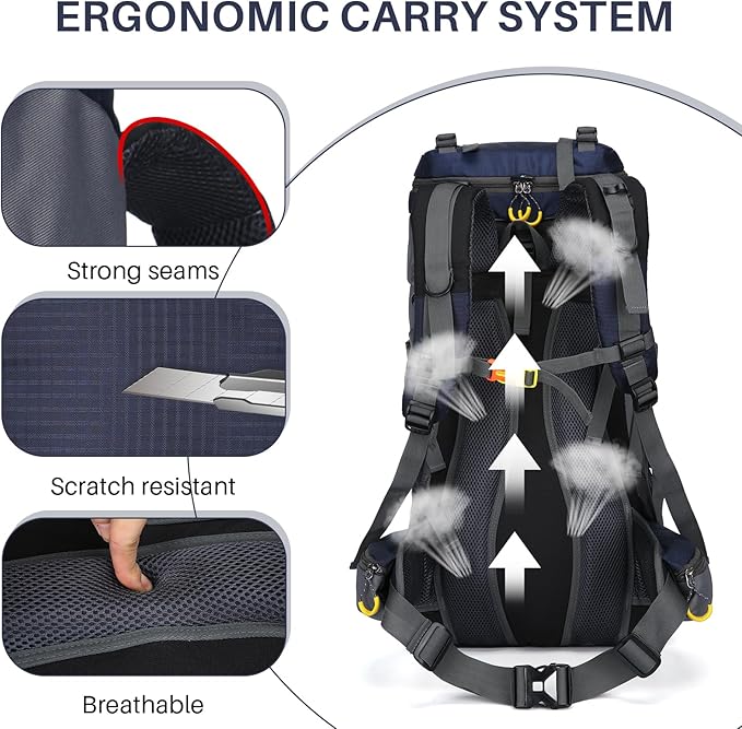 • 【900D Fabric and Breathable】: ShowyLive 𝟲𝟬𝗟 Hiking Backpack is made of 𝟵𝟬𝟬𝗗 Oxford material, ensuring its durability and wear-resistance. The breathable design allows for proper airflow, keeping you cool and comfortable during your outdoor adventures.