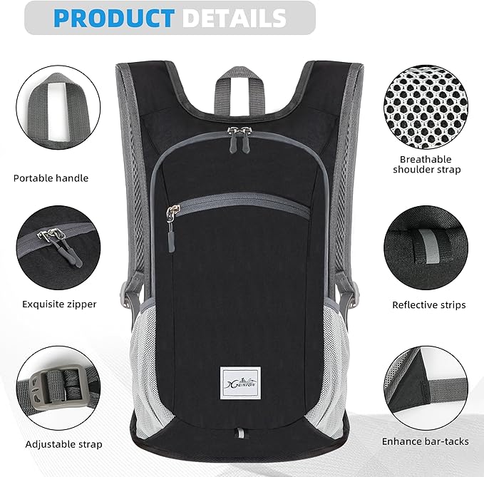 • 【Widely Use of Hiking Bag】:This foldable backpack provides enough storage space to accommodate a lot of stuff, such as your book's, ipad, umbrella and clothes etc. Small hiking backpack for women men is the great companion for hiking, travel, cycling, camping, day trips and everyday use.