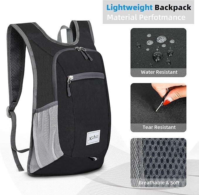• 【Lightweight Small Backpack】:This small travel backpack weighs only 0.4 pounds but has a capacity of 15 liters allows you to pack some essential items on your outdoor adventures. Lightweight backpack yet well made. The hiking backpack is Suitable for light duty-on used.