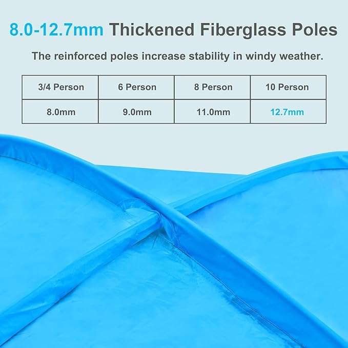 • Upgraded & Durable Design: The SILVER COATED Fabric ensure that the coverage area of Anti-UV effects, keeping you and your family away from the damage of the strong sunshine. 12.7mm IMPORTED fiberglass frame is safer, more durable and rust free, which support tent stably stand by itself and keeps shape after long time use
