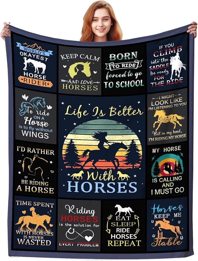 Horse Blanket Gifts for Girls Women,Soft Cozy Horses Blankets and Throws Bed Bedding,Funny Horse Themed Equestrian Gifts for Horse Lovers Kids 50"X40"