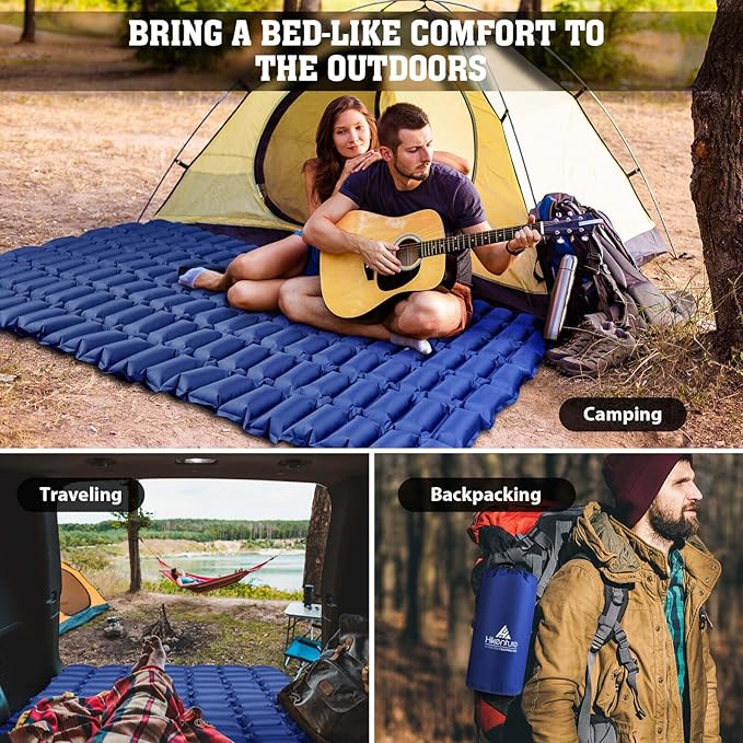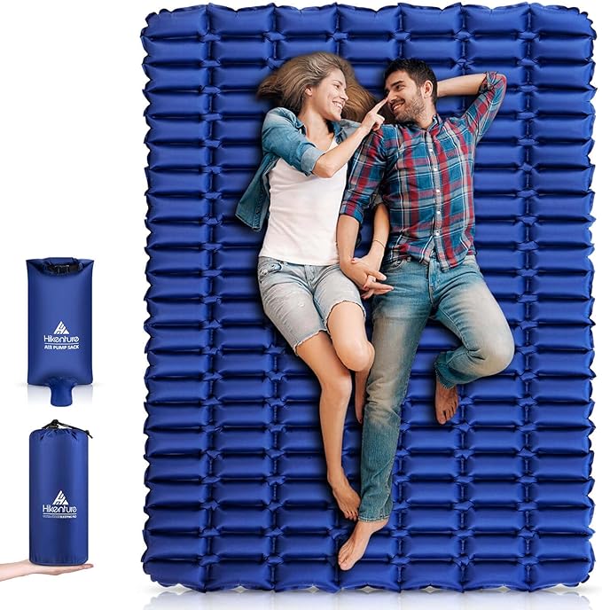 Hikenture Ultralight Camping Mattress 2 Person,Double Sleeping Pad, Backpacking Pad with Pump Sack,Inflatable Air Mat for Tent(Blue)