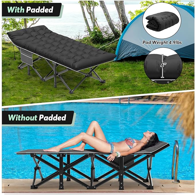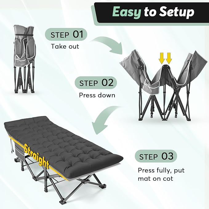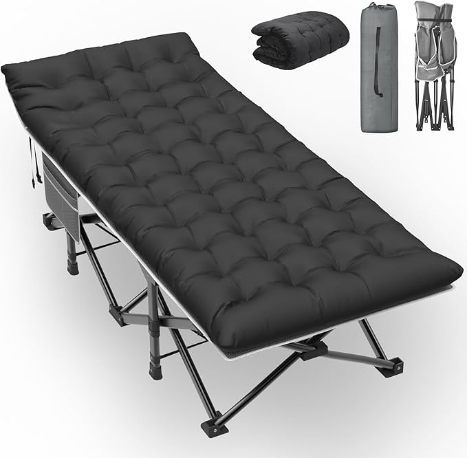 • 【Portable & Folding】Camping cots offer the convenience of easy portability, allowing you to set up a comfortable sleeping space anywhere you go, lightweight(23.3 lbs), foldable, come with Oxford bag for hassle-free transportation. Say goodbye to uncomfortable sleeping arrangements on the ground.