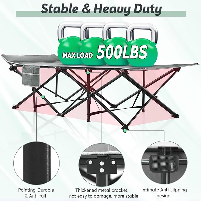 • 【Durable and Long-lasting】The upgraded version of the cot bed is made of double layer 600D Oxford cloth, designed with 10 tubular iron legs and 25mm thick square tubes to provide stability, featuring superb strength, supporting a max capacity of 500 pounds.