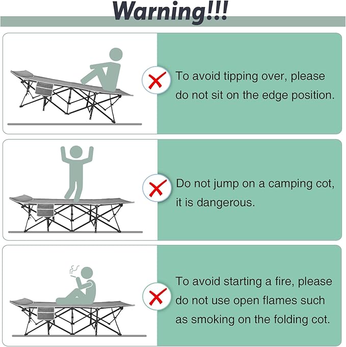 • 【Versatile Usage】Sleeping cot are not limited to outdoor use only. it can also be used as spare beds for guests at home or for lounging in the backyard. Their versatility makes them a practical and multi-functional piece of equipment for both camping enthusiasts and occasional users alike.