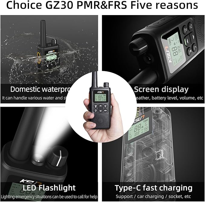 1 Pack Walkie Talkies, KSUN TFSI GZ30 Two-Way Radio Long Range with Receive Two Channels simultaneously LED Flashlight VOX LCD Display Tpye-C for Hiking Camping Trip(1 Pack)