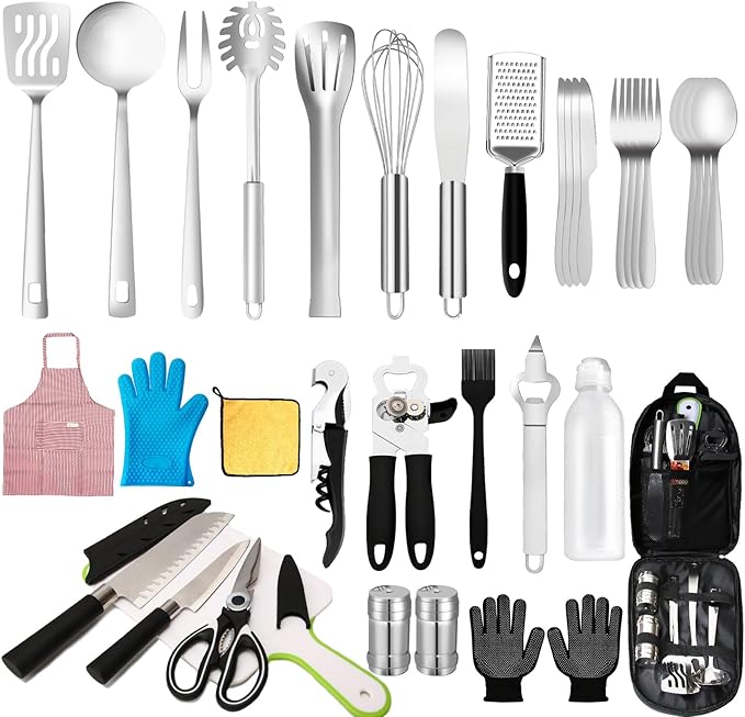 Camping Cooking Utensils Set - Camping Kitchen Equipment, Compact and Portable Camper Accessories, Perfect for Travel, Picnic, RV, Camping, BBQ, Party