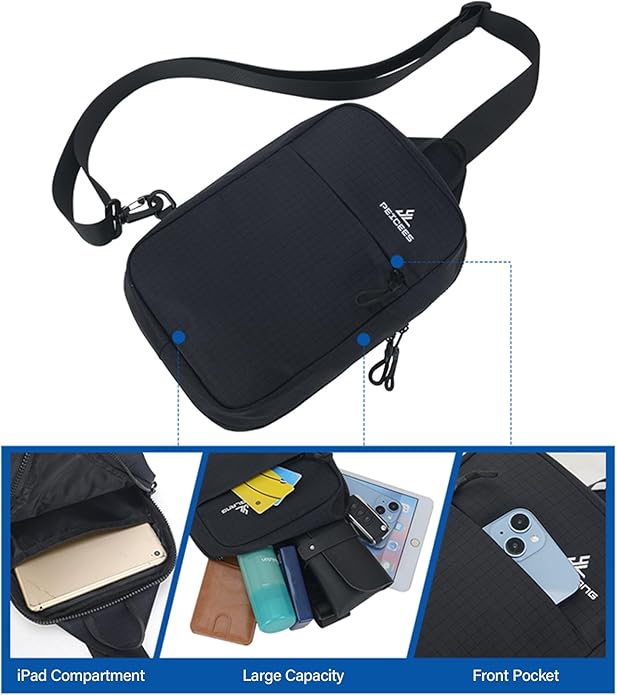 Peicees Small Sling Bag for Women Men Trendy Casual Phone Chest Bag Waterproof Crossbody Daypack