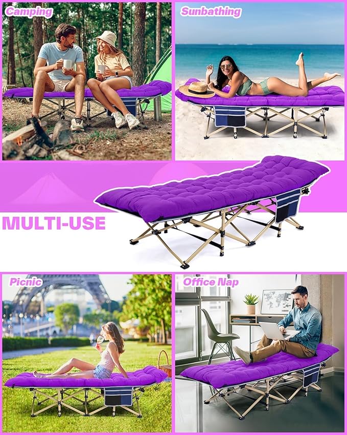 Sportneer Camping Cot, Camping Cots for Adults with Mattress Max Load 450 LBS Heavy Duty Portable Sleeping Folding Bed with Padded for Camping Tent Office Outdoor Travel Sleep Over (1, Blue+Purple)