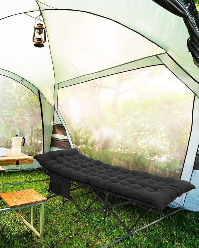 • Comfortable Mattress: Sportneer Camping Cot with mattress, soft pad add extra comfort, you can sleep more comfortably in this portable foldable bed for camping. In summer, the camping cot for adults can also be take away to increase the breathability.