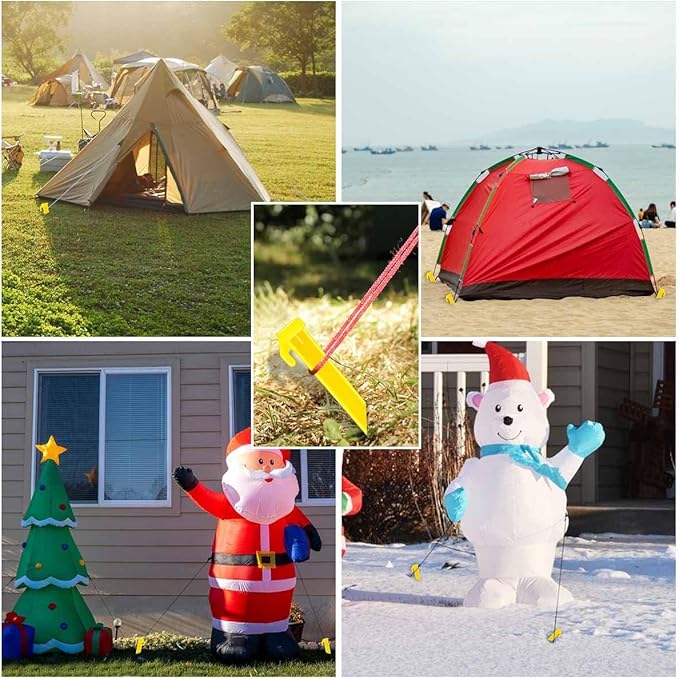 • 【Wide Application】This plastic tent stake has a wide range of uses, great for hiking and camping outdoors, which can be used for tents, canvas, rain tarp, canopy, gazebos, hammocks, hanging chairs, inflatable boats, and can also be used to maintain the position of inflatable Christmas decorations, bringing you a lot of convenience