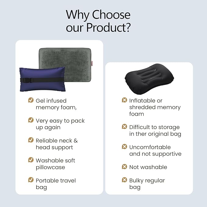 • ✅【Versatile Pillow】Not just for camping, hiking. Lightweight, compressibl memory foam travel pillow is also ideal for short trips and flights, making it a multi-functional choice for anyone in need of a comfortable pillow.