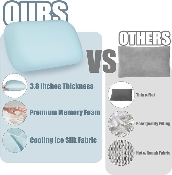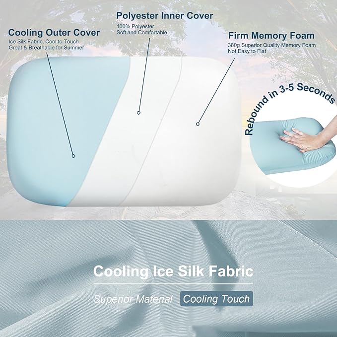 • Cooling & Skin-Friendly.Travel pillow's outer cover is made of ice silk, so you can feel cooling when you lay on the pillow. Cooling bed pillow is breathable and can allowing fresh air to flow throughout the camp pillow and making you wake up feeling refreshed.