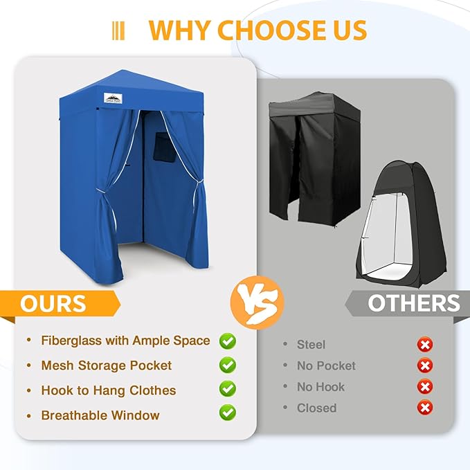 • INSTANT PRIVACY CHANGING ROOM: 4x4 changing tent for one or two people. Perfect as a changing room or sun cabana for outdoor activities: fashion show, photoshoot, camping, backyards, pool party or a showering tent, portable toilet shelter .