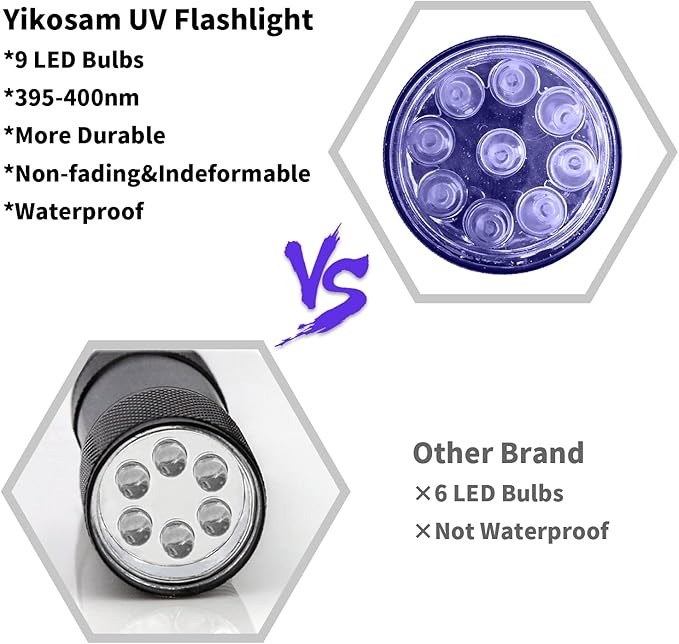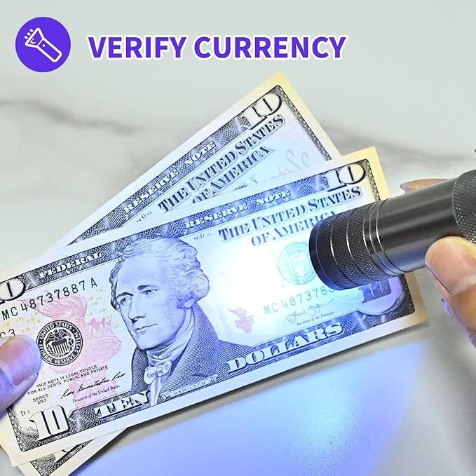 • 【Practicality】: The 395-401 band helps to more clearly detect food stains and pet urine stains, hair, and stains that are invisible to the naked eye. Perfect for easily verifying currency, driver's licenses, official ID cards, passports, and more.