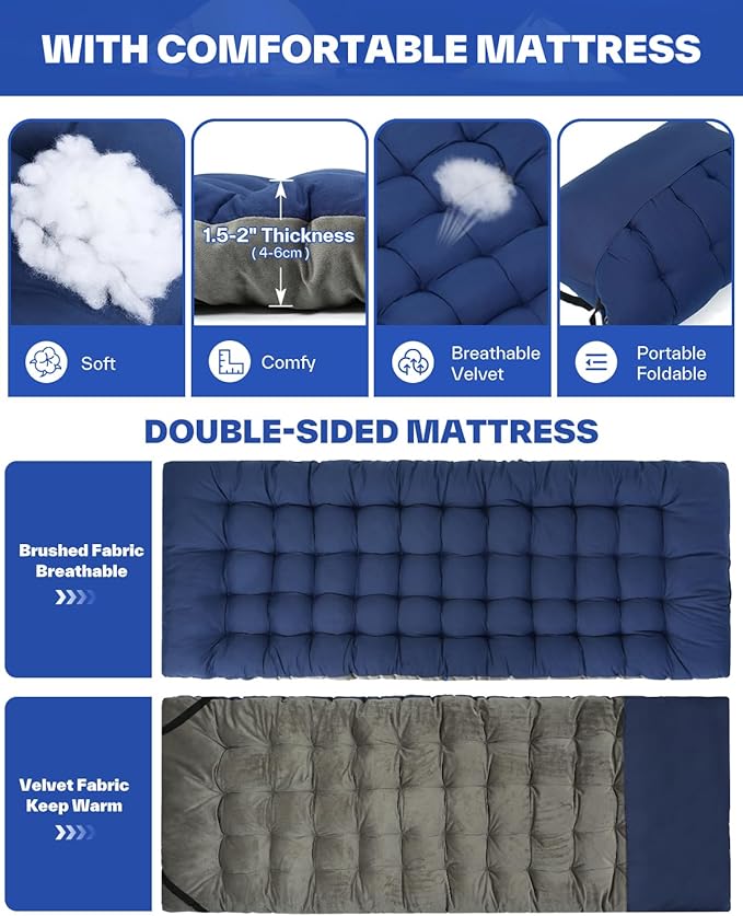 • Versatile Application: Take this bed with you on camping trips, picnics, fishing adventures, hikes, and more. Or utilize it as a fantastic option for accommodating guests. Whether you have friends staying over or family visiting, you can offer them the comfort of a real cot for sleeping, ensuring they have a restful night's sleep. Whether you're heading outdoors or staying indoors, this bed will provide you with a comfortable sleeping experience like no other.