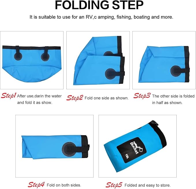 • Collapsible Design: Foldable and portable water container for easy storage and transport.