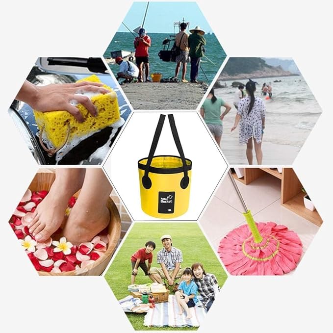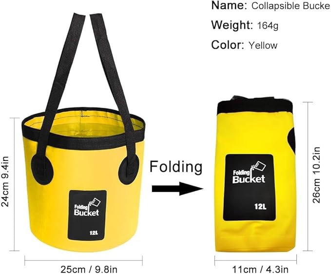 Collapsible Bucket with Handle, Multifunctional Foldable Water Container for Camping, Hiking, Traveling, Fishing, Washing, Gardening, Waterproof, Durable, Lightweight, Black (SFVYELLOW, 12L)