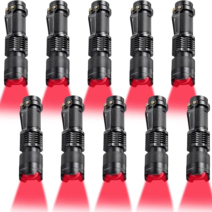 • Functional and practical: scalable red light flashlight has an adjustable focus range for different usages, support scaling, features more than 150 yards light beam with long range; This flashlight is made of stable aluminum alloy casing, skid-proof and water resistant, with a mini size and steel body clip, convenient to carry and hold