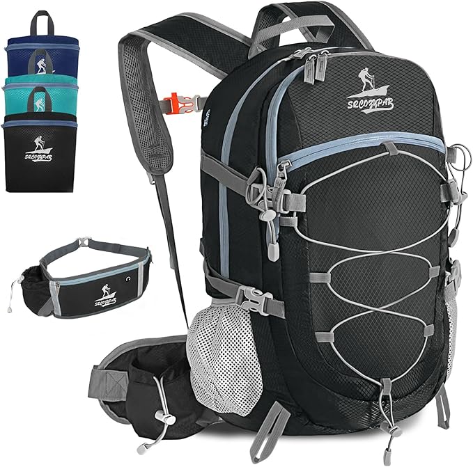• 40 LITER HIKING BACKPACK COMFORTABLE DESIGN: Lightweight foldable backpack weighs only 1.3 pounds and has a breathable padded back that helps reduce fatigue on long hikes. Ergonomically designed, this women's hiking backpack is both labor-saving and durable. The adjustable chest buckle perfectly distributes the weight of the pack, keeping it stable and centered. The chest buckle is designed as a survival whistle for quick and easy access in case of emergency