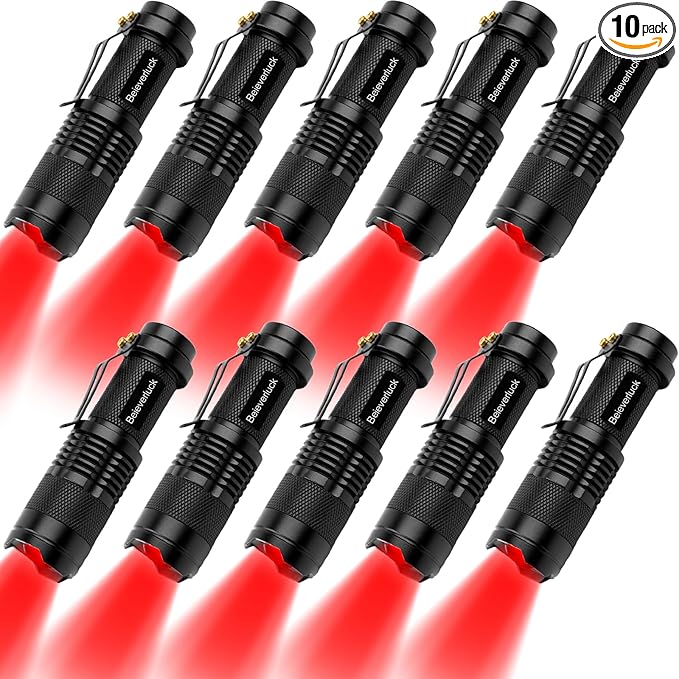 10 Pack Red Light Flashlight 3 Modes Red LED Flashlight Scalable Red Light Torch with Clip for Hunting Astronomy Night Observation and Outdoor Activities