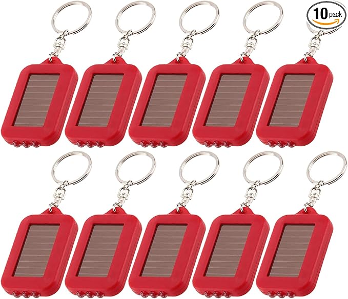 10 Pack Solar Mini Keychain Light Pocket Tiny LED Flashlight Rechargeable, Bright Small Flashlights Torch for EDC, Emergency, Power Outage,Camping, Party Favors (Red)