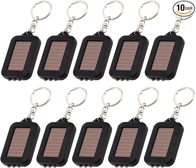 10 Pack Solar Mini Keychain Light Pocket Tiny LED Flashlight Rechargeable, Bright Small Flashlights Torch for EDC, Emergency, Power Outage,Camping, Party Favors (Black)