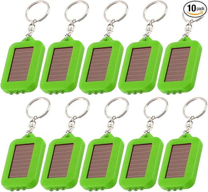 10 Pack Solar Mini Keychain Light Pocket LED Flashlight Rechargeable, Bright Small Flashlights for EDC, Emergency, Camping (Green)