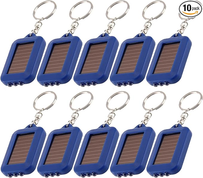 10 Pack Solar Mini Keychain Light Pocket Tiny LED Flashlight Rechargeable, Bright Small Flashlights Torch for EDC, Emergency, Power Outage,Camping, Party Favors (Blue)