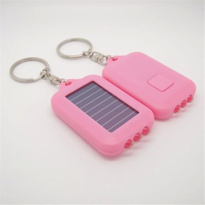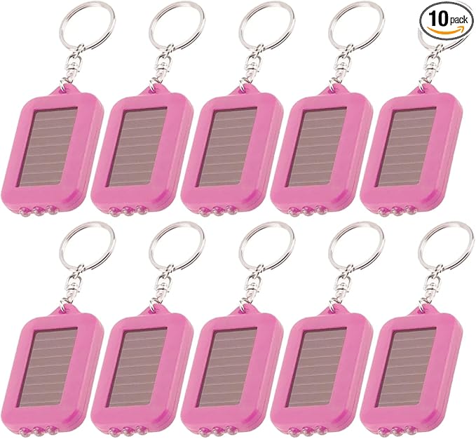 10 Pack Solar Mini Keychain Light Pocket Tiny LED Flashlight Rechargeable, Bright Small Flashlights Torch for EDC, Emergency, Power Outage,Camping, Party Favors (Pink)