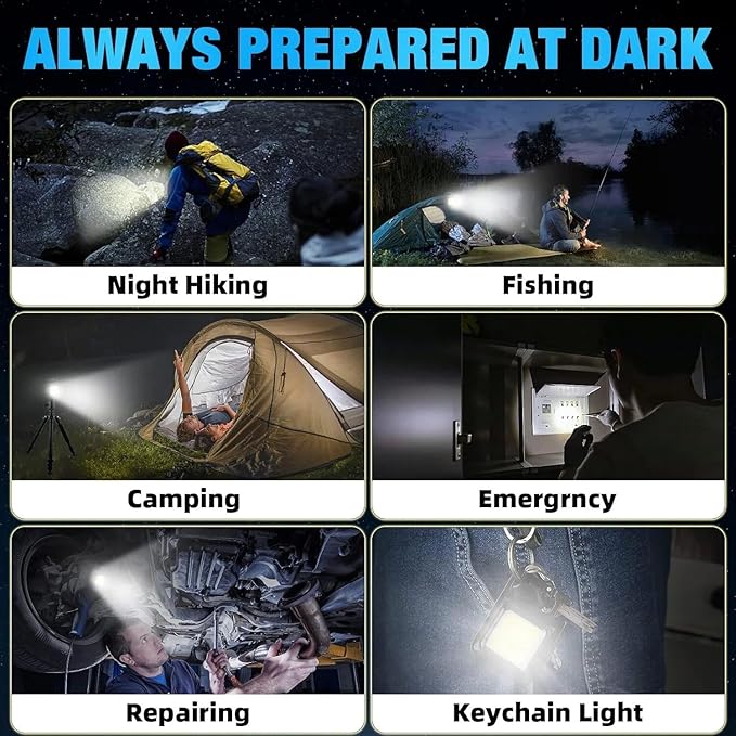 • 【 Pocket Size 】This pocket flashlight is small and light enough to slip into a pocket, backpack or purse. With a key ring attachment. Easy to clip to your belt, bag, shirt, or pants pocket. You can easily expand to turn on or off the main light and click the flashlight button to turn on or off the Keychain LED Flashlight.