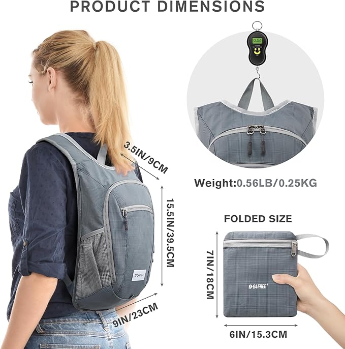 G4Free 10L/15L Hiking Backpack Lightweight Packable Hiking Daypack Small Travel Outdoor Foldable Shoulder Bag(Dark Grey)