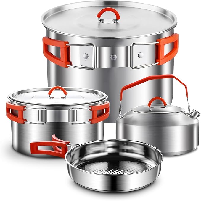 Camping Cookware Set,Camping Cooking Set,304 Stainless Steel Camping Pots and Pans Set,Camping Gear for Hiking Outdoor Cooking Picnics for 2-4 People