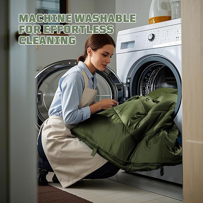 • Skin-Friendly Brushed Lining & Smart Storage Design: The 1.4D microfiber inner fabric of the military sleeping bag prevents irritation during sleep, while the 7.5x5.9" secure pocket holds phones/essentials. Dual YKK zippers enable foot venting or full blanket conversion, paired with anti-snag shoulder straps to prevent midnight zipper malfunctions